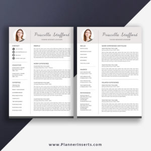 in www.PlannerInserts.com-Resume-PRISCILLA-2-Page-Resume-Template Student Resume, Internship Resume, Graduate Resume, MBA Resume, Executive Resume ←Previous Image Next Image→